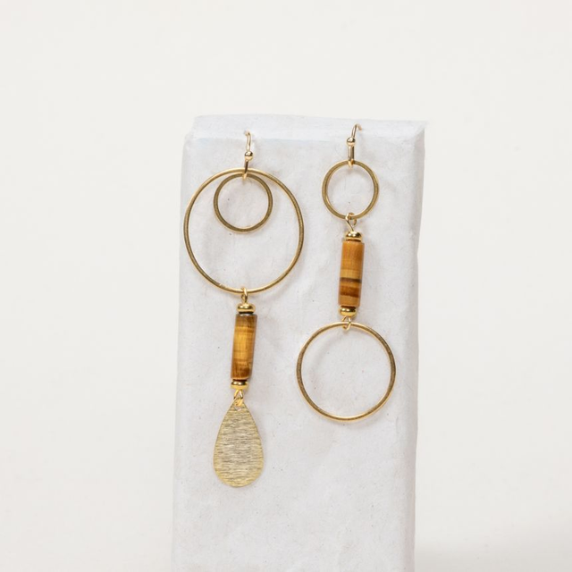 Boucles d'oreilles asymétriques en œil de tigre